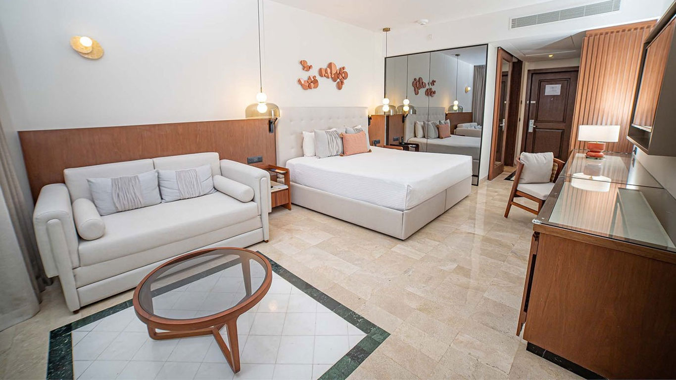 The Deluxe Garden View room at Grand Palladium Kantenah Resort & Spa is surrounded by the exuberant vegetation of the Mayan forest are our luxurious, comfortable Deluxe rooms. They have two double beds or one king sized bed. They are the perfect accommodation due to their central location which offers easy access to the central building and the restaurant area through our green paths.